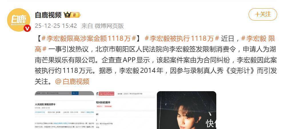 深夜的热搜总有一些让人唏嘘的故事。演员李宏毅的名字这次不是因为新剧,而是在法院发出的限制高消费令中被反复提到。他身陷一场金额高达1118万元的合同争端,被北京市朝阳区人民法院严格限制日常奢侈消费,包括无法乘坐飞机、高档列车,也不准在星级酒店或旅游度假。这条消息甫一公布,网友迅速将讨论点燃:“十五岁时就签下天价违约条款,还能追责吗?”几乎每个评论区都在质疑,这样的合同对青少年公平吗?事件回溯至2014年,当年仅15岁的李宏毅通过《变形计》崭露头角。随即,他与湖南芒果娱乐有限公司签下了合约,但这份协议由监护人代签。条款规定——公司出资培养,若他私自接洽其他工作,则需上交全部收入外,每剩余一年还要支付100万违约金。时间流转到如今,这纸合同成了他的枷锁,也折射出整个行业的“未成年签约”灰色地带。